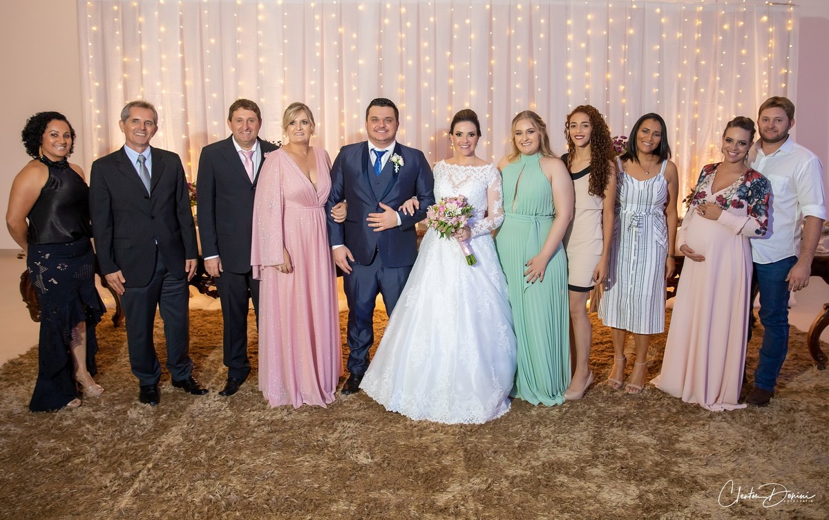 Foi um casamento perfeito, tudo lindo e o principal, noivos e convidados num astral altíssimo. Vieram parentes e amigos de vários locais do Brasil, principalmente do RS e MS.